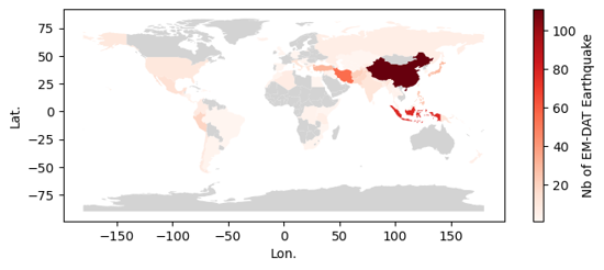 legend_kwds={"label": "Nb of EM-DAT Earthquake"},